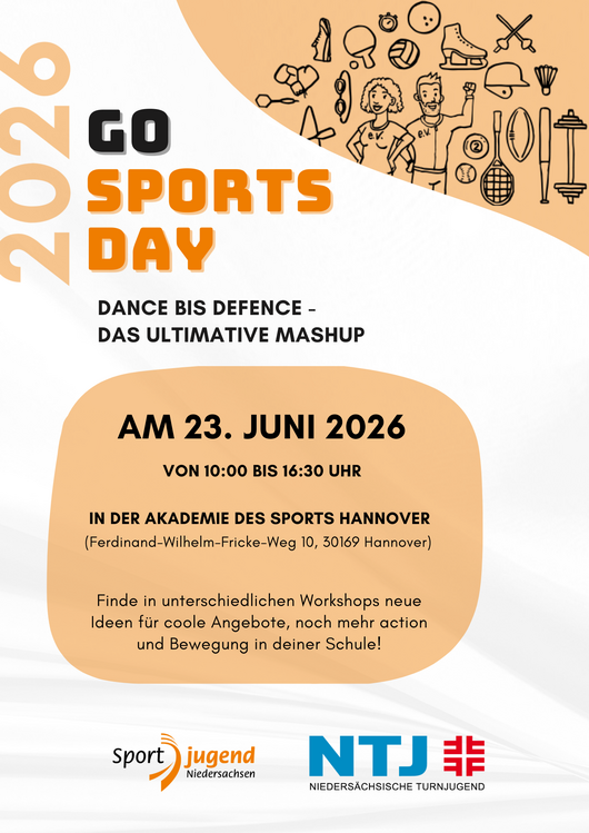 Am 23. Juni 2026 findet unser jährlicher GoSports-Day in der Akademie des Sports in Hannover statt. An diesem Tag werden Schulsportassistent*innen aus Niedersachsen in verschiedenen Workshops die Möglichkeit haben, neue Ideen und Anregungen für ihren sportlichen Schulalltag mitzunehmen. Es ist für jede*n etwas dabei - von Tanzen über Fitness bis zur Selbstverteidigung.