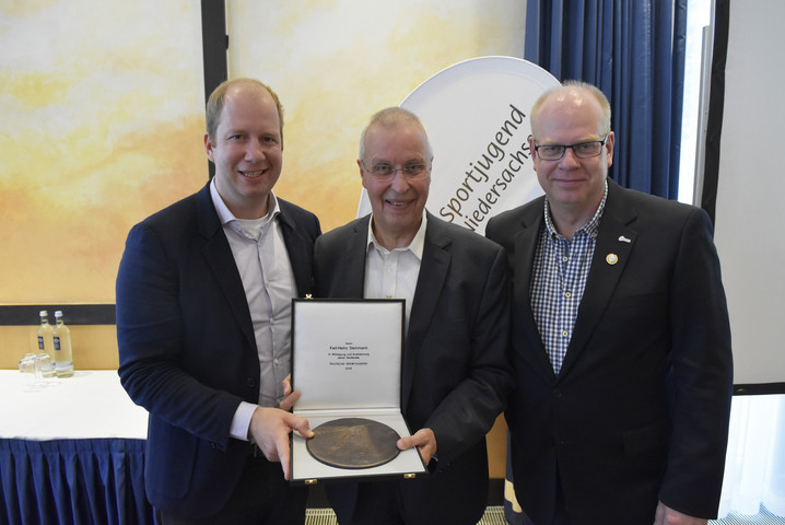 Foto: (v.l.) Jan Holze (1. Vorsitzender der Deutschen Sportjugend), Karl-Heinz Steinmann (Leiter der Akademie des Sports) und Thomas Dyszack (langjähriger Vorstandsvorsitzender der Sportjugend Niedersachsen)