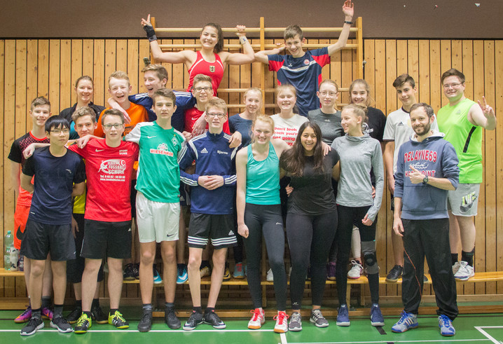 Die engagierten Schüler und Schülerinnen des Ratsgymnasiums Rotenburg und Lehrer Philipp Schwabe haben mit dem Referententeam der Sportjugend ein sportliches Wochenende verbracht. Im Fokus befanden sich Projekte, das Kennenlernen der Sportjugend- und Vereinsstruktur, das Ausprobieren von Trendsportarten, wie Kin-Ball oder Headis, sowie das Entdecken von Spiel und Sport für die Pause.