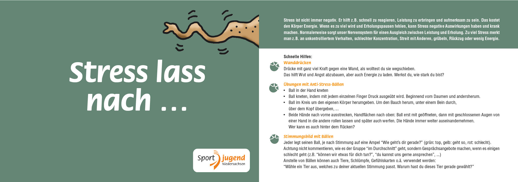 Die mentale Gesundheit von Kindern und Jugendlichen erhält immer mehr Bedeutung. Kinder und Jugendliche fühlen sich stärker psychisch belastet durch z.B. Krisen, Zukunftsängste und Einsamkeit. Die Zahl der diagnostizierten psychischen Erkrankungen bei Kindern und Jugendlichen steigt. Bei vielen Kindern nimmt zudem die Bewegungsaktivität ab, gleichwohl Bewegung und Sport bedeutende präventive Wirkungen auf das psychische Wohlbefinden haben können. Sport und Bewegung hat die Möglichkeit neben den körperlichen Aspekten auch positive Auswirkungen auf Resilienz, Selbstwirksamkeit, Zugehörigkeitsgefühl und Teilhabe und somit auf die mentale Gesundheit zu haben. Außerdem können die Übungsleitenden in den Sportangeboten und Teamer von Freizeiten wichtige Bezugspersonen außerhalb des familiären Umfelds sein.